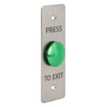 Az FMB-C-25SS-2 egy lapos, gomba alakú mikrokapcsolós nyomógomb „EXIT” felirattal és rozsdamentes fém kiemelőkerettel a felületre szereléshez. A gomb piros és zöld színben kapható.