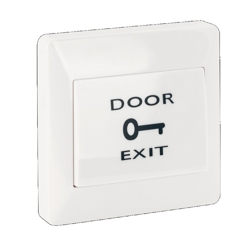 A PBK-812A egy műanyag nyomógomb „DOOR EXIT” felirattal, nagyméretű, fehér házban a felületre szereléshez.