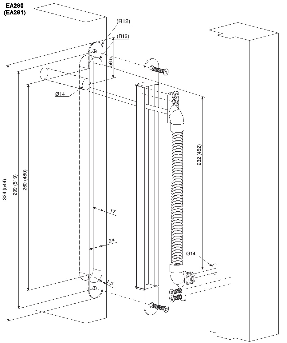 Az EA280 rejtett kábelátvezető általában az ajtólapba kerül beépítésre, de ha nincs elég hely, a keretbe is beilleszthető. A beépítés előtt a kábelt át kell vezetni az ajtón, és a kábel áthaladásához szükséges lyuknak elég nagynak kell lennie, hogy biztosítsa a kábel könnyű mozgását és elmozdulását.
