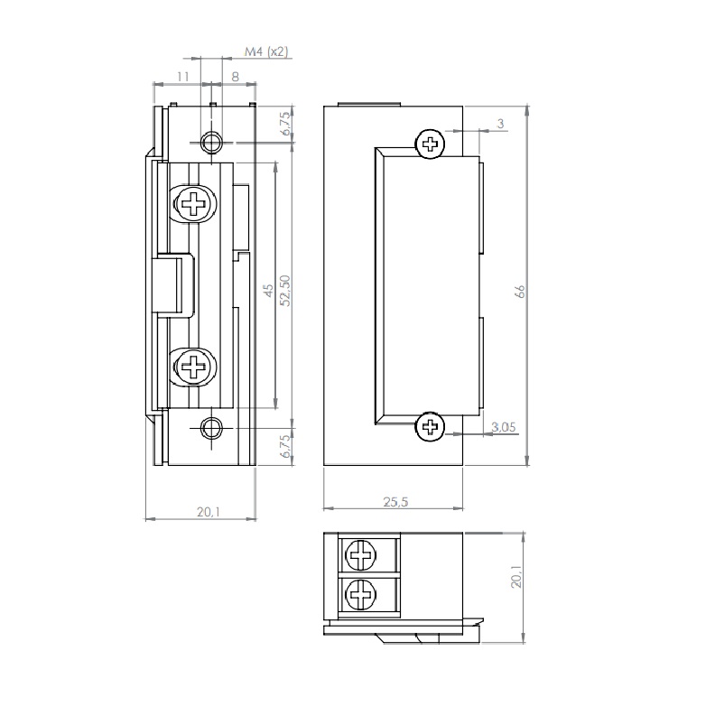 Keskeny elektromos zár ellenoldal:99-1-NF-524-TOP normál 25 mm széles zárhoz képest, a keskeny zár 20 mm széles.