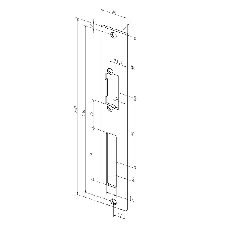 - 250 x 34 x 3mm