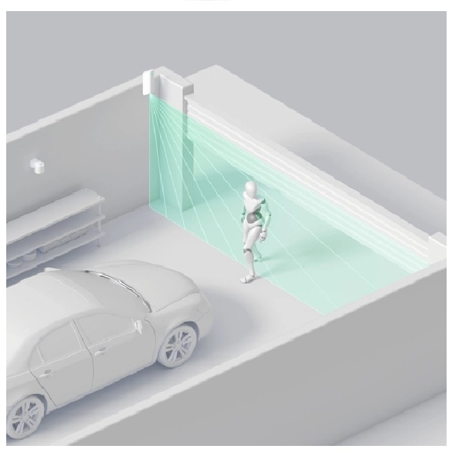 - függöny infra egy keskeny vonalban érzékeli a mozgást, ideális bejáratok/ablakok/kerítésszakasz védelmére
